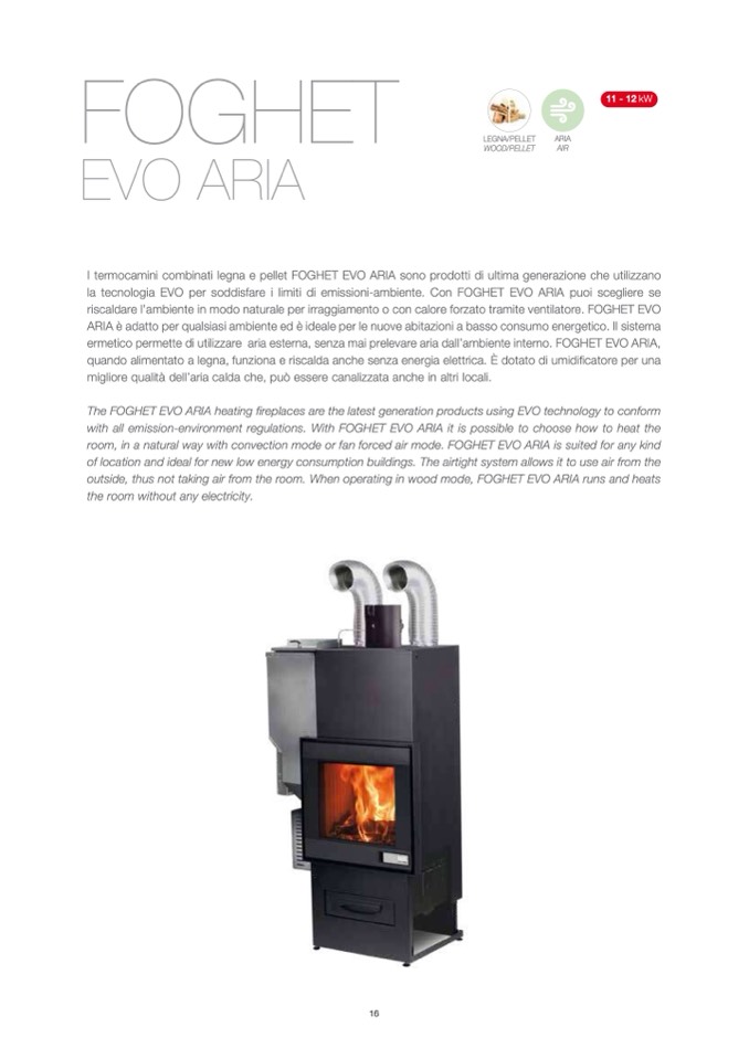 outside, thus not taking air from the room. When operating in wood mode, FOGHET EVO ARIA runs and heats