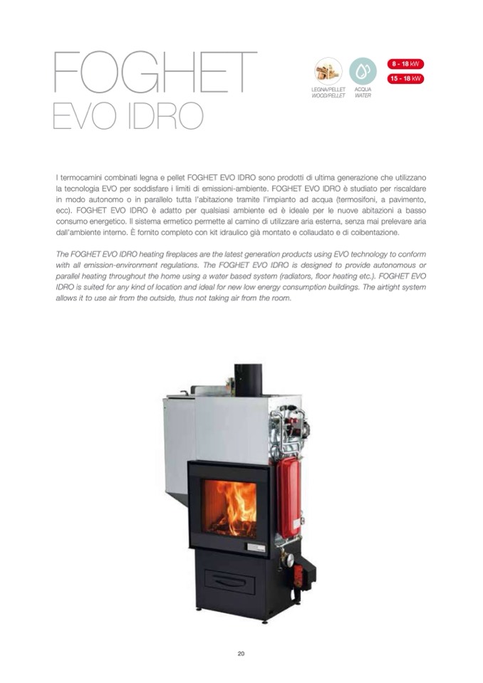 la tecnologia EVO per soddisfare i limiti di emissioni-ambiente. FOGHET EVO IDRO è studiato per riscaldare
