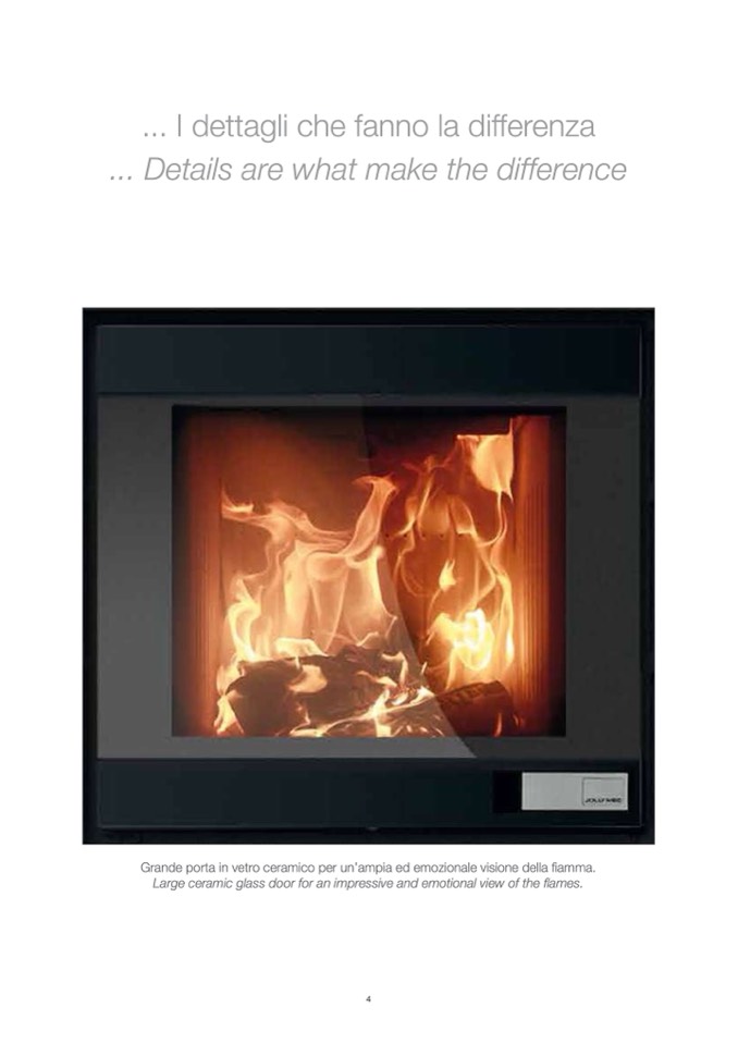 Grande porta in vetro ceramico per un’ampia ed emozionale visione della fiamma.