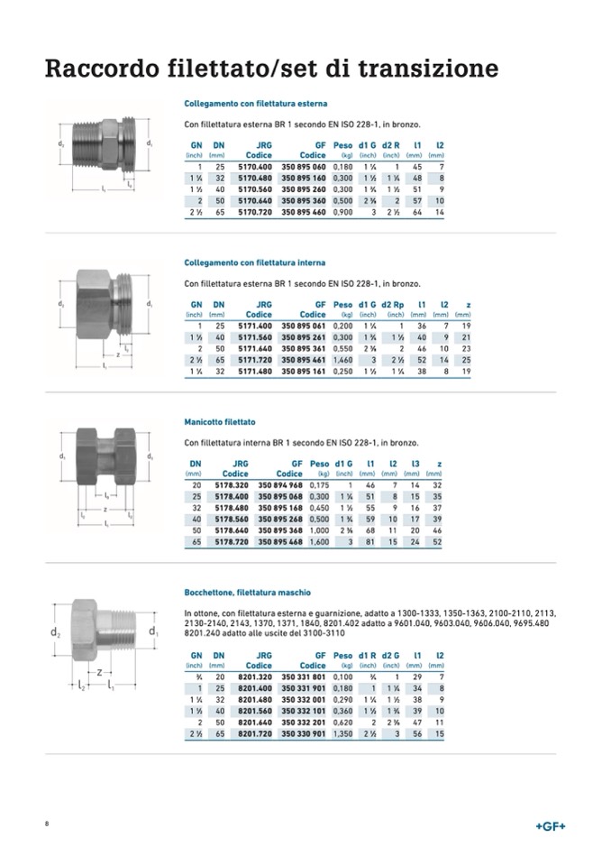 Con fillettatura esterna BR 1 secondo EN ISO 228-1, in bronzo.