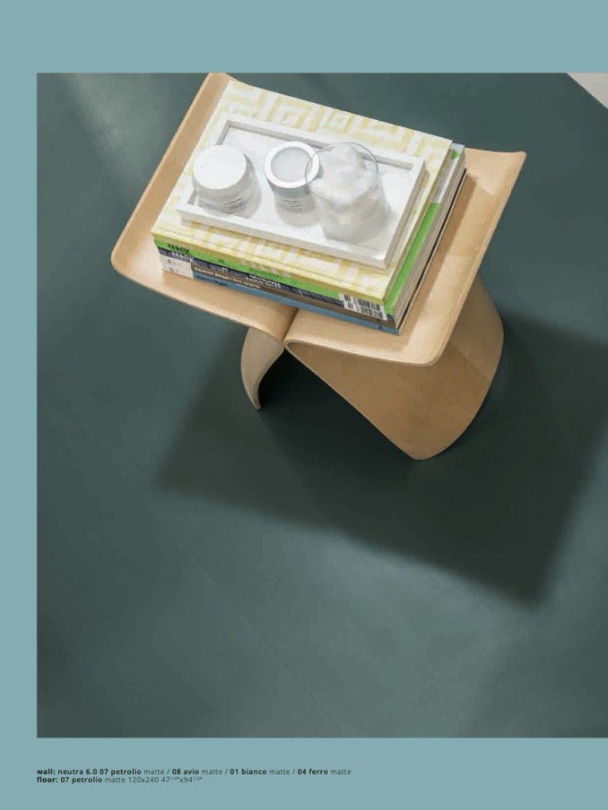 floor: 07 petrolio matte 120x240 471/4”x941/2”