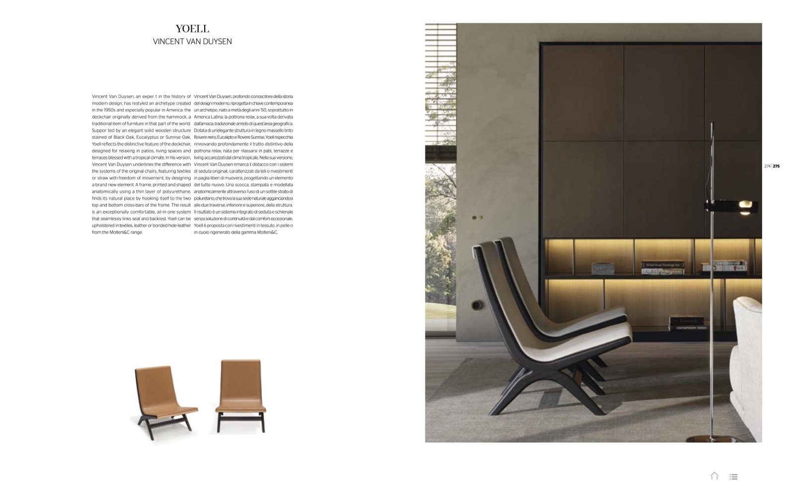 Yoell è proposta con rivestimenti in tessuto, in pelle o
