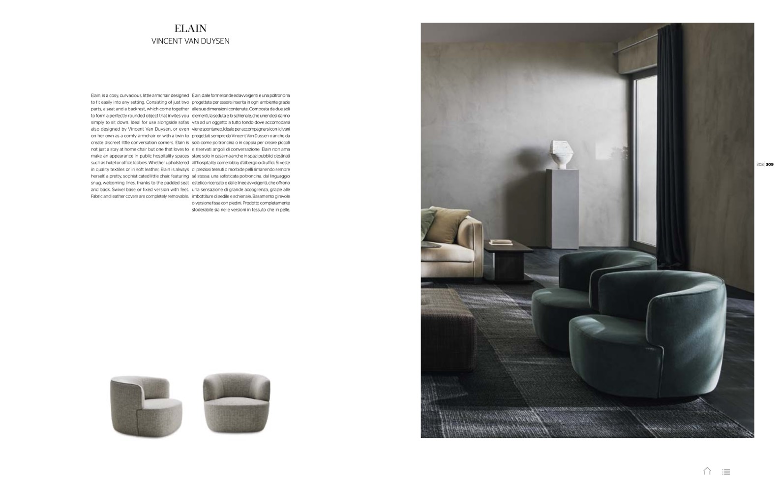 Elain, dalle forme tonde ed avvolgenti, è una poltroncina