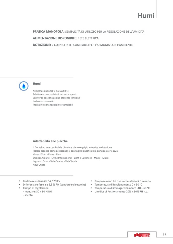 - manuale: 30 ÷ 90 % RH