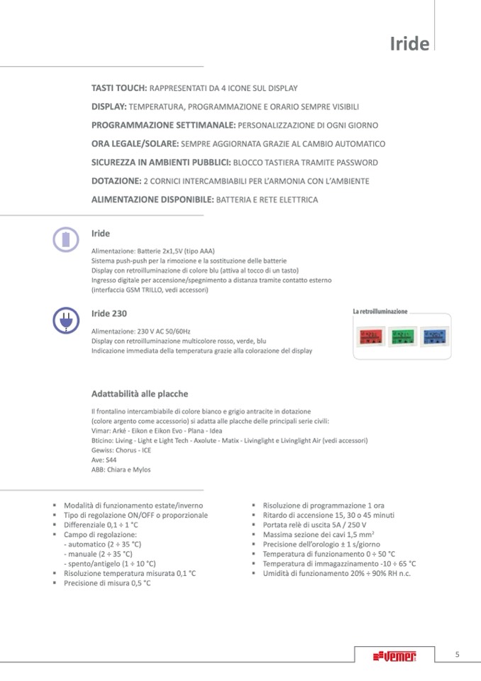 (colore argento come accessorio) si adatta alle placche delle principali serie civili: