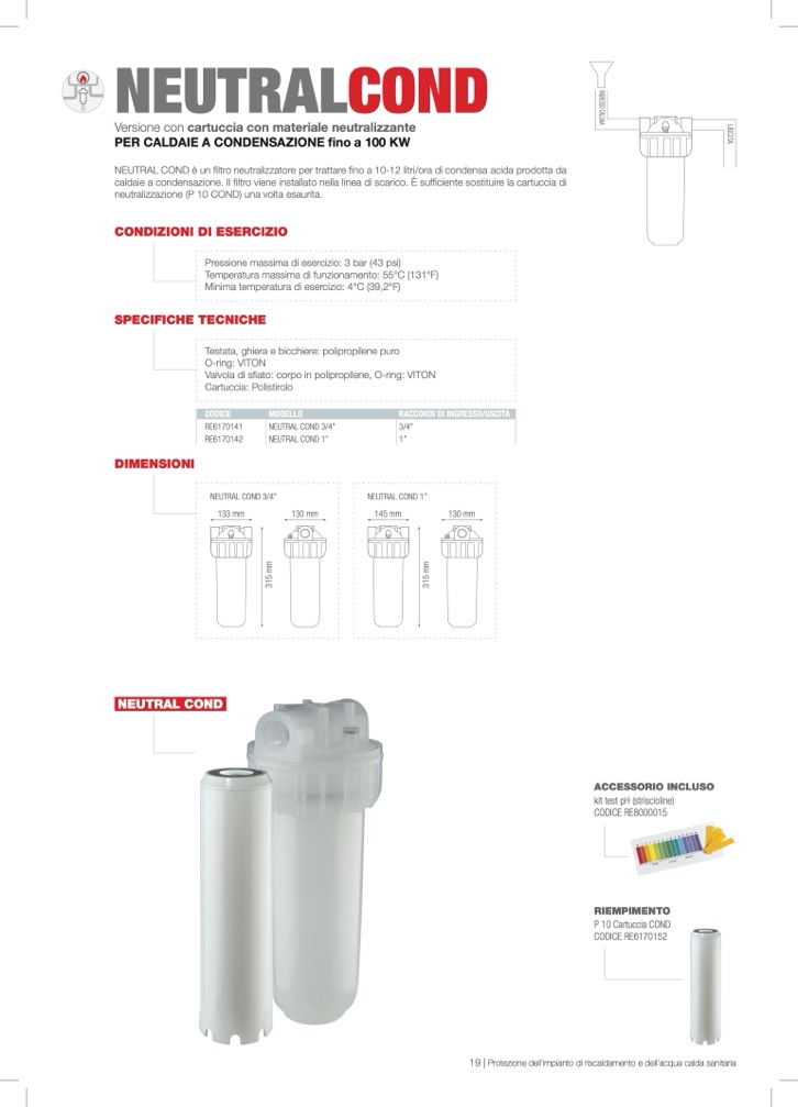 caldaie a condensazione. Il filtro viene installato nella linea di scarico. È sufficiente sostituire la cartuccia di