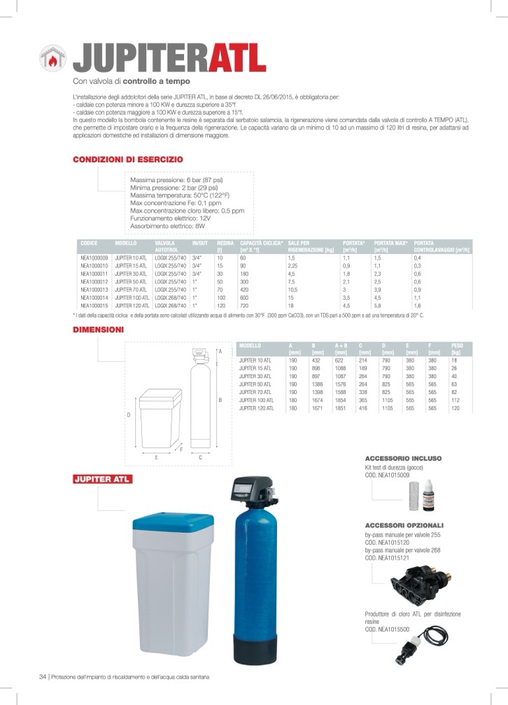 L’installazione degli addolcitori della serie JUPITER ATL, in base al decreto DL 26/06/2015,