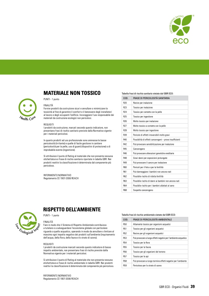 etichettatura e frase di rischio ambientale in tabella GBR. Nei prodotti
