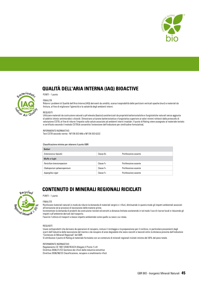 Si attribuisce il punto di Rating al materiale formulato con un contenuto di minerali regionali riciclati minimo del 30% del peso totale.