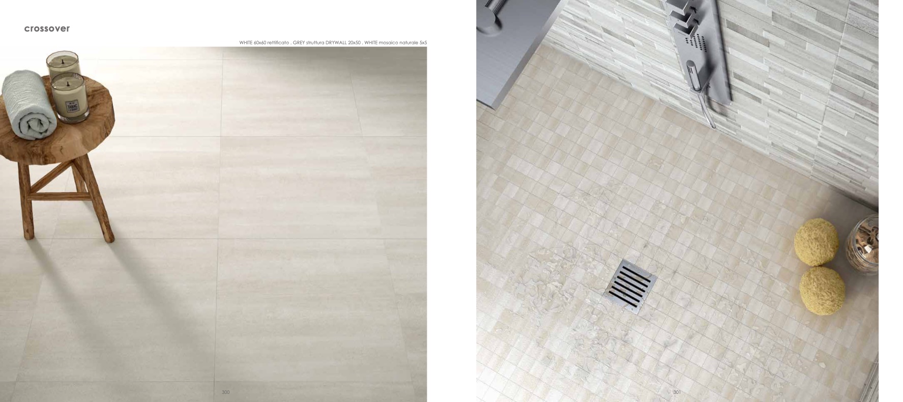 WHITE 60x60 rettificato . GREY struttura DRYWALL 20x50 . WHITE mosaico naturale 5x5