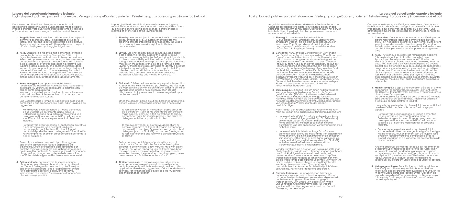 2. Posa. Utilizzare solo fuganti di tipo cementizio, evitando