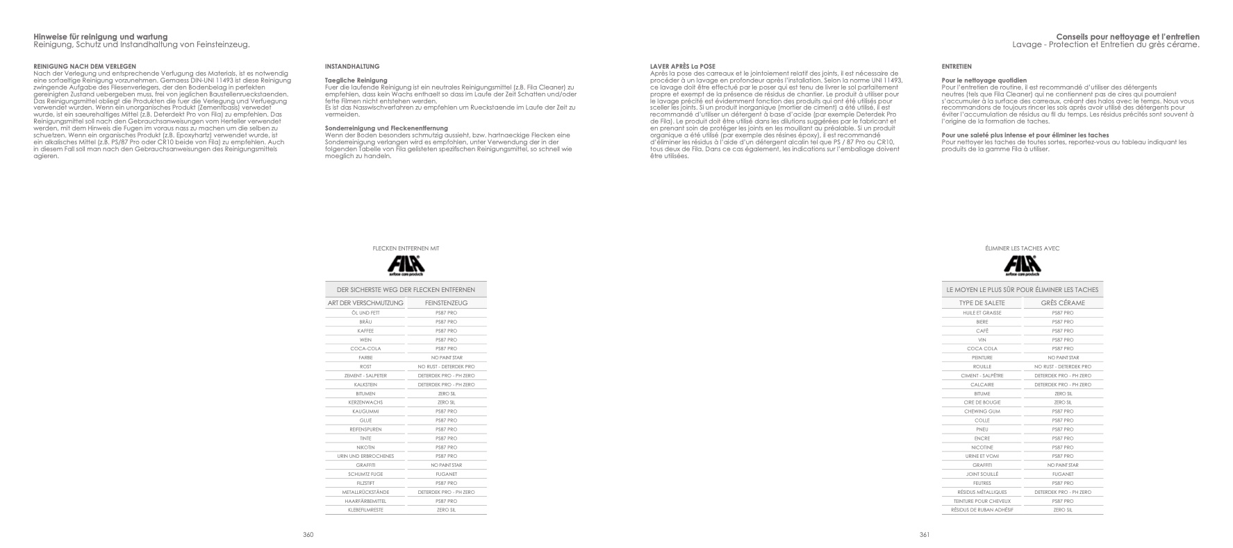 Fuer die laufende Reinigung ist ein neutrales Reinigungsmittel (z.B. Fila Cleaner) zu