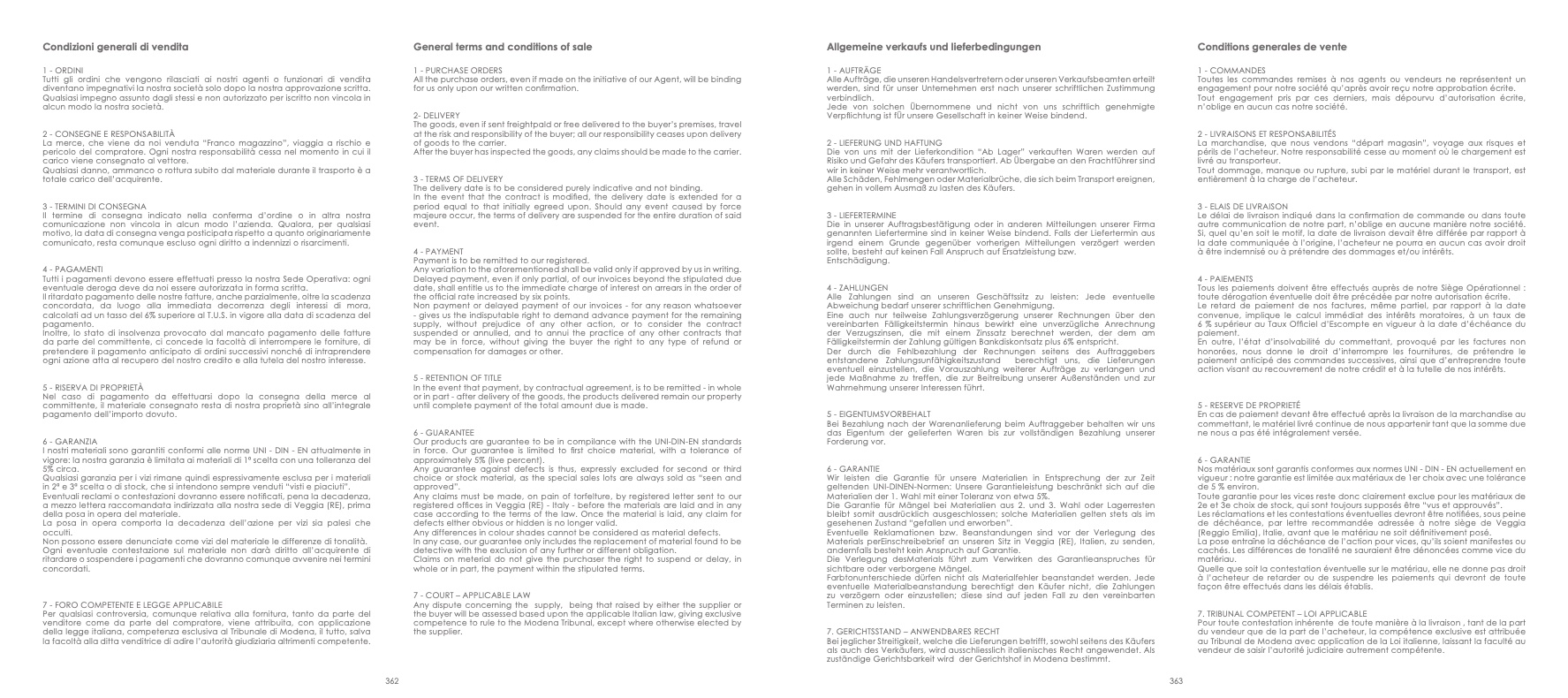 vigore: la nostra garanzia è limitata ai materiali di 1a scelta con una tolleranza del