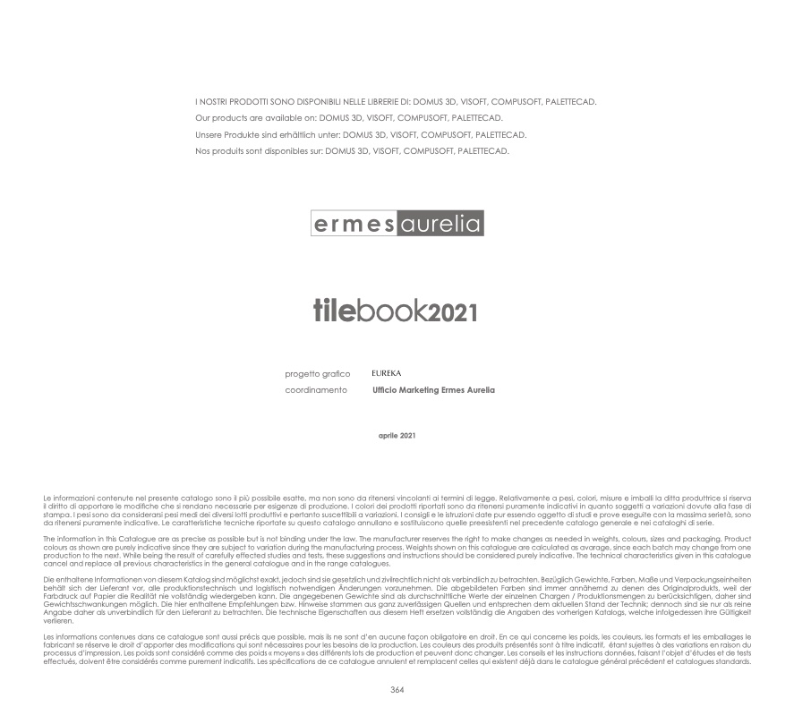 colours as shown are purely indicative since they are subject to variation during the manufacturing process. Weights shown on this catalogue are calculated as avarage, since each batch may change from one