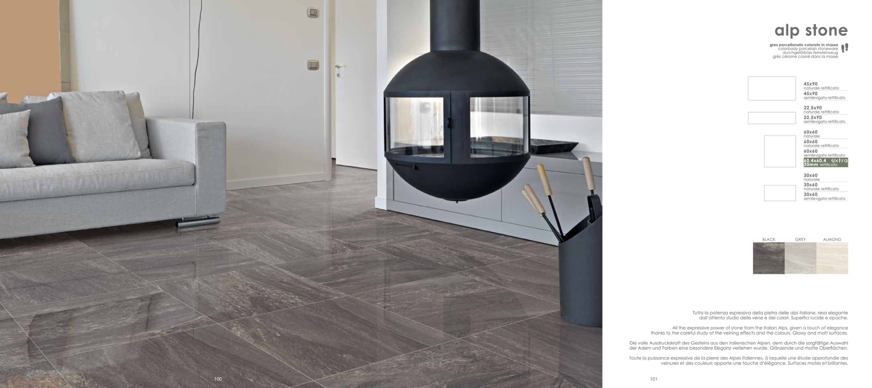 thanks to the careful study of the veining effects and the colours. Glossy and matt surfaces.