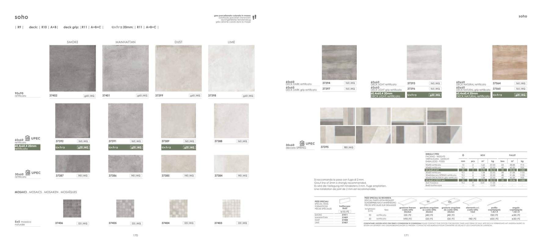 Si raccomanda la posa con fuga di 2 mm.
