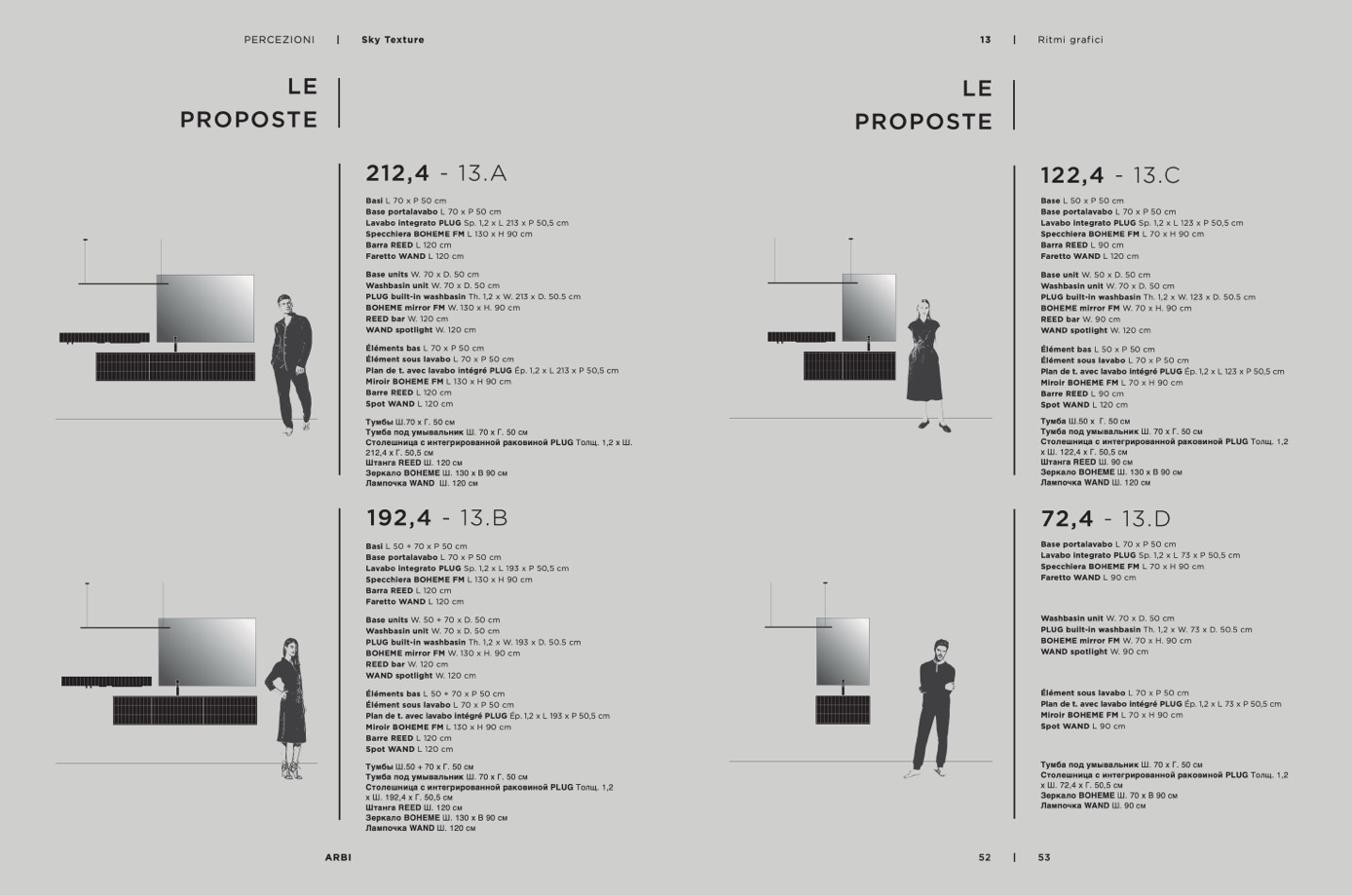 Lavabo integrato PLUG Sp. 1,2 x L 213 x P 50,5 cm