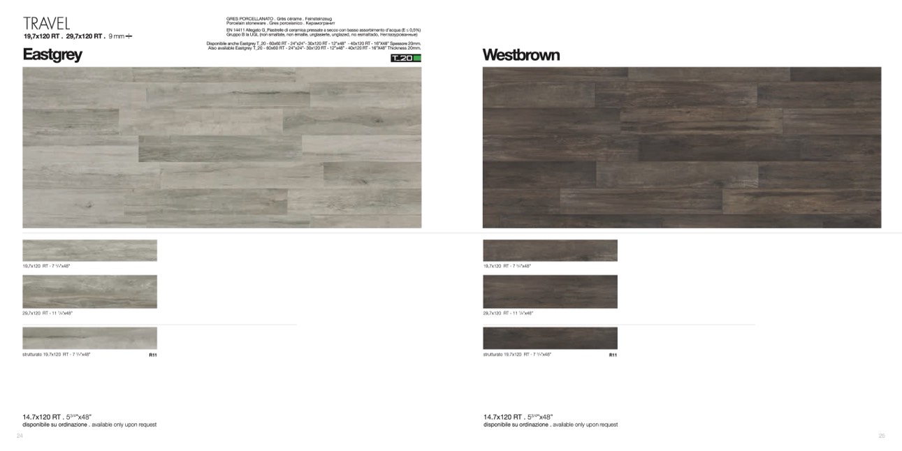 Also available Eastgrey T_20 - 60x60 RT - 24”x24”- 30x120 RT - 12”x48” - 40x120 RT - 16”X48” Thickness 20mm.