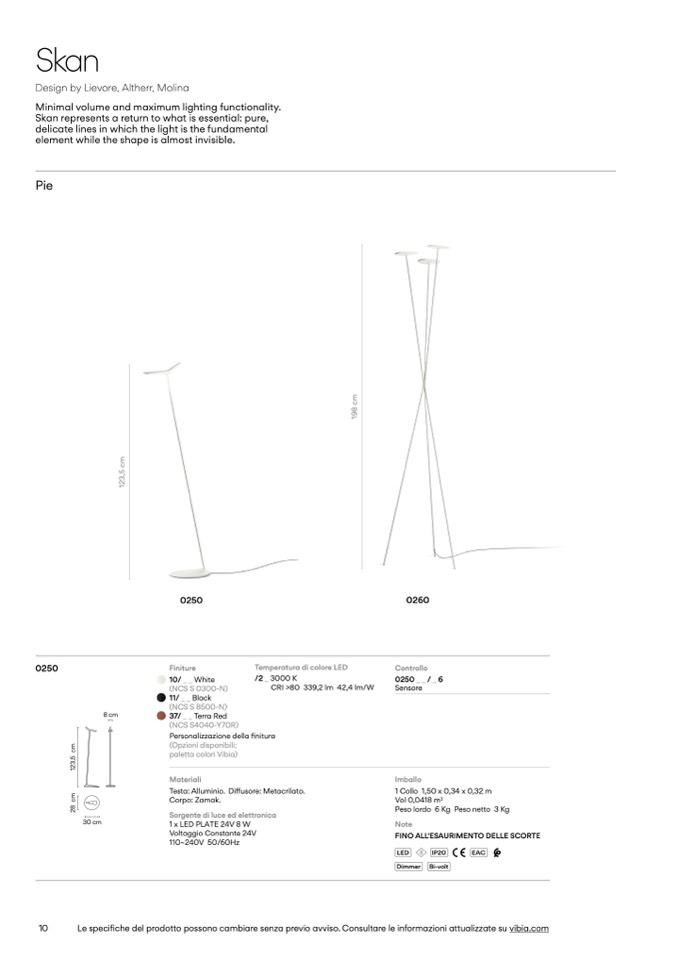 Le specifiche del prodotto possono cambiare senza previo avviso. Consultare le informazioni attualizzate su vibia.com