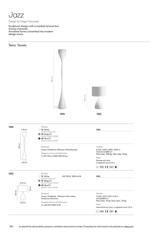Le specifiche del prodotto possono cambiare senza previo avviso. Consultare le informazioni attualizzate su vibia.com