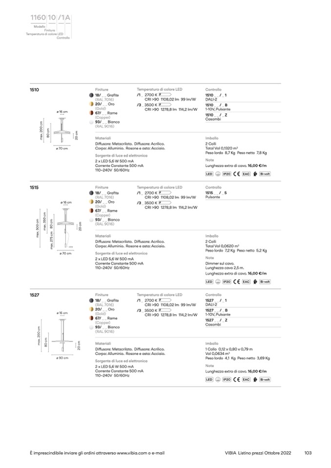 È imprescindibile inviare gli ordini attraverso www.vibia.com o e-mail