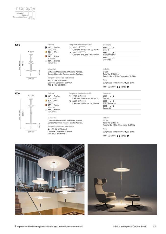 È imprescindibile inviare gli ordini attraverso www.vibia.com o e-mail