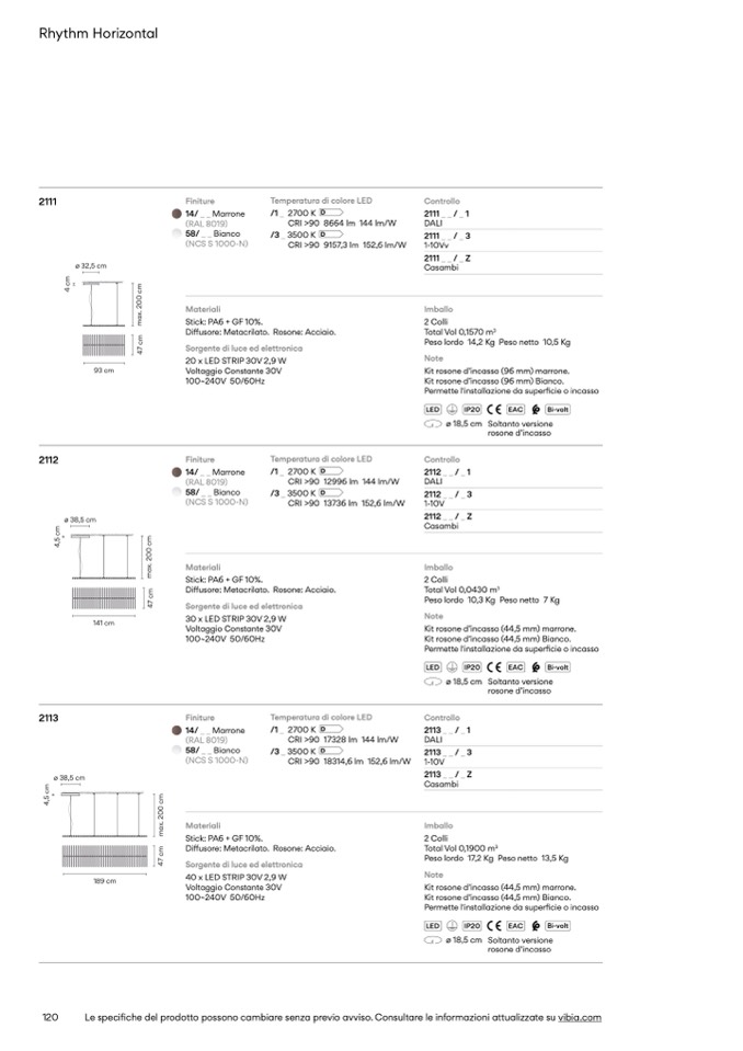 Le specifiche del prodotto possono cambiare senza previo avviso. Consultare le informazioni attualizzate su vibia.com