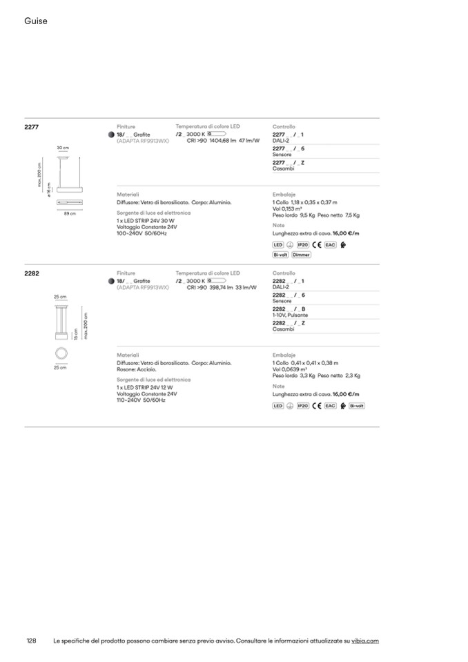 Le specifiche del prodotto possono cambiare senza previo avviso. Consultare le informazioni attualizzate su vibia.com