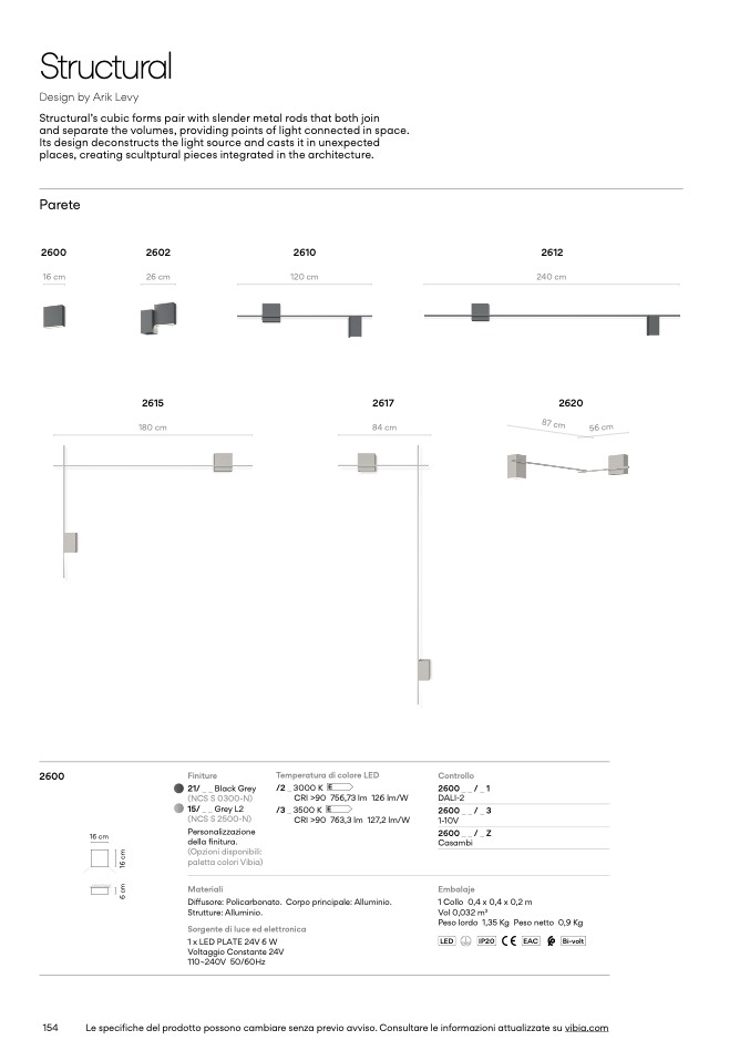 Le specifiche del prodotto possono cambiare senza previo avviso. Consultare le informazioni attualizzate su vibia.com