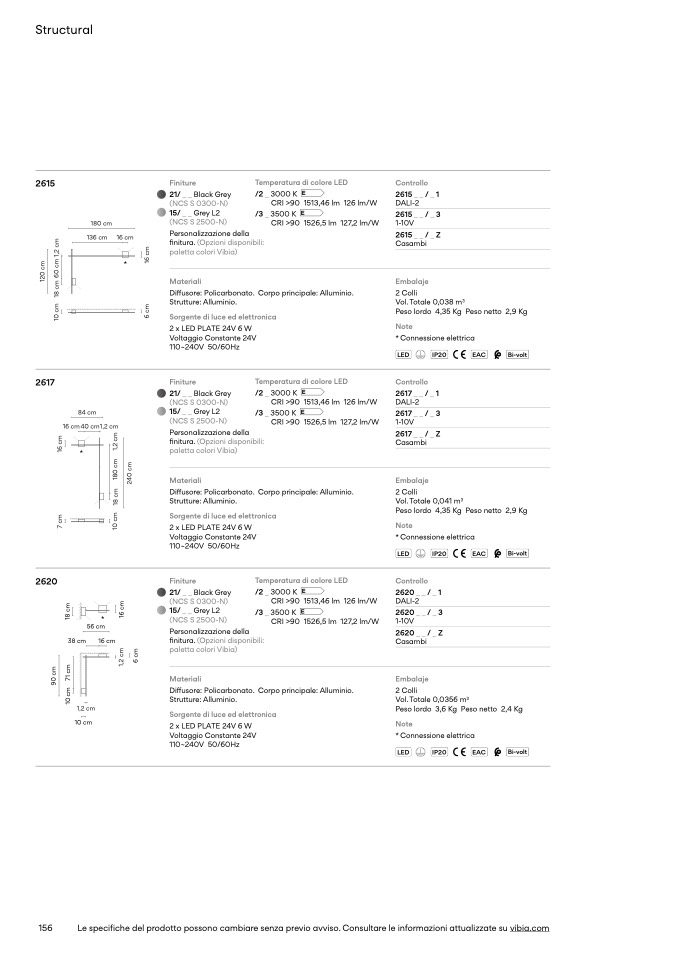Le specifiche del prodotto possono cambiare senza previo avviso. Consultare le informazioni attualizzate su vibia.com