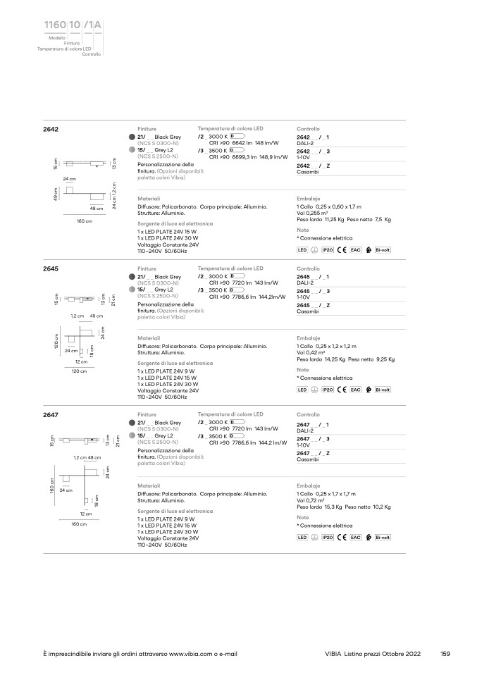 È imprescindibile inviare gli ordini attraverso www.vibia.com o e-mail