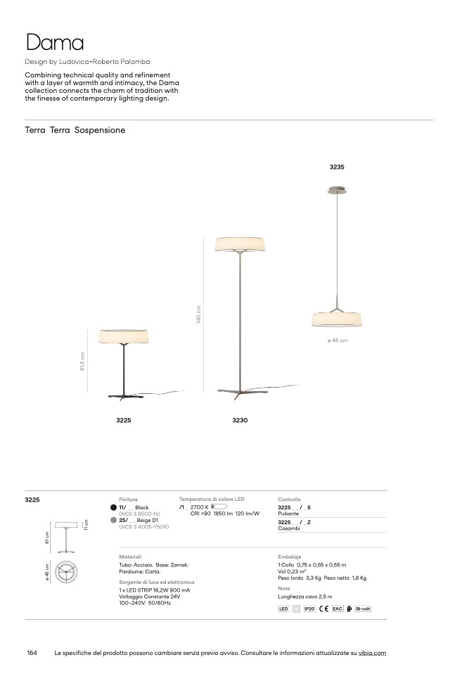 Le specifiche del prodotto possono cambiare senza previo avviso. Consultare le informazioni attualizzate su vibia.com
