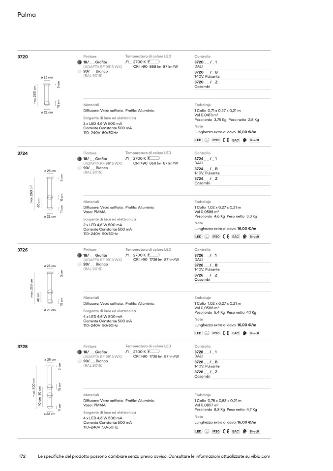 Le specifiche del prodotto possono cambiare senza previo avviso. Consultare le informazioni attualizzate su vibia.com