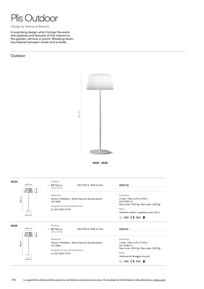 Le specifiche del prodotto possono cambiare senza previo avviso. Consultare le informazioni attualizzate su vibia.com