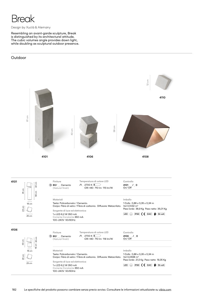 Le specifiche del prodotto possono cambiare senza previo avviso. Consultare le informazioni attualizzate su vibia.com