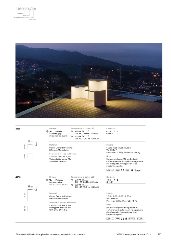 È imprescindibile inviare gli ordini attraverso www.vibia.com o e-mail