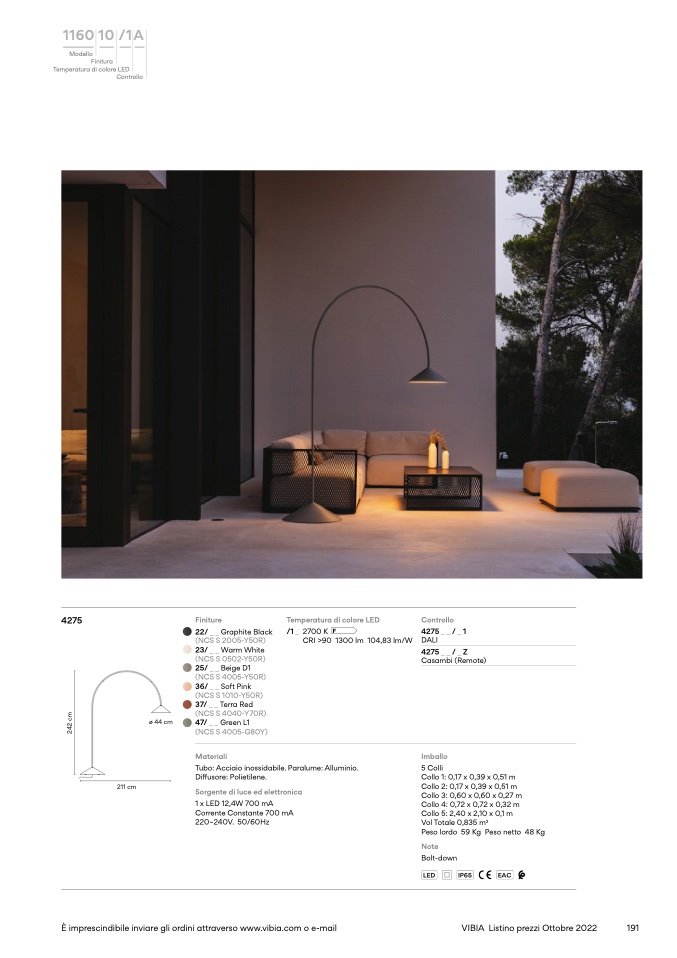 È imprescindibile inviare gli ordini attraverso www.vibia.com o e-mail