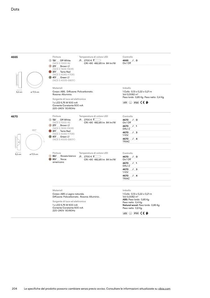 Le specifiche del prodotto possono cambiare senza previo avviso. Consultare le informazioni attualizzate su vibia.com