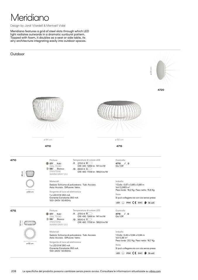Le specifiche del prodotto possono cambiare senza previo avviso. Consultare le informazioni attualizzate su vibia.com