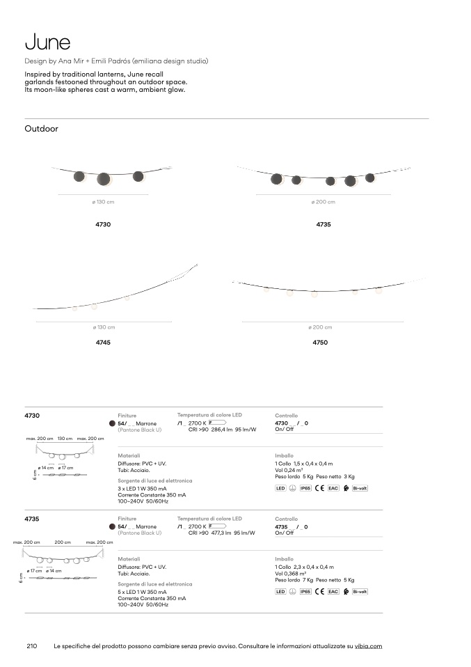 Le specifiche del prodotto possono cambiare senza previo avviso. Consultare le informazioni attualizzate su vibia.com