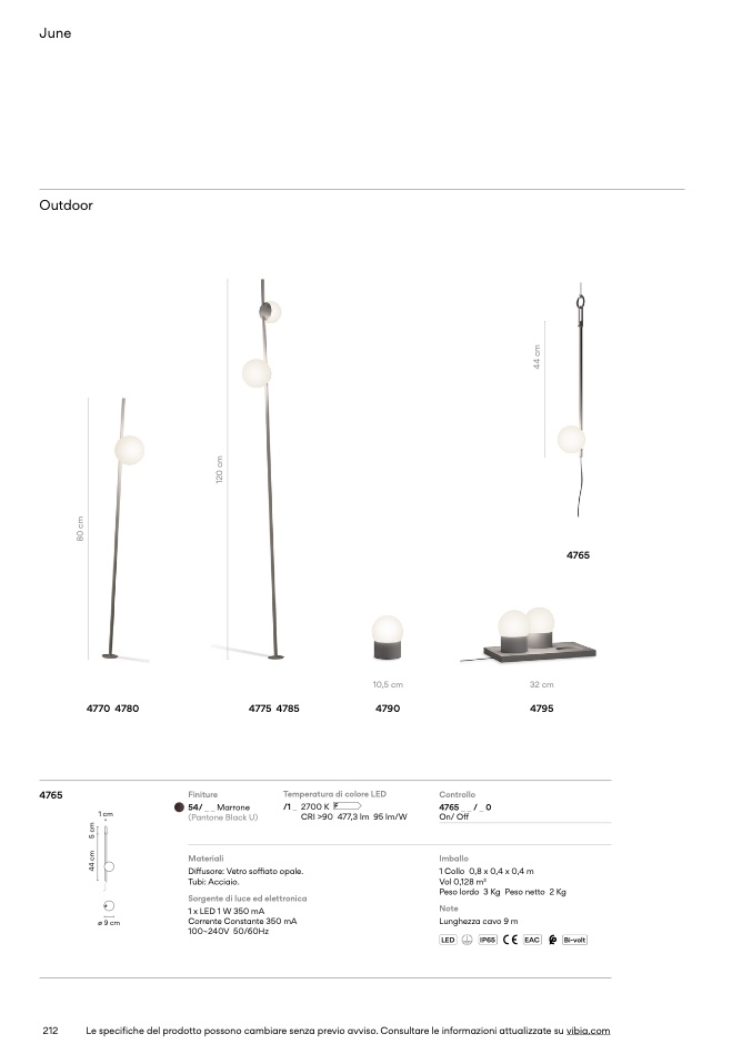 Le specifiche del prodotto possono cambiare senza previo avviso. Consultare le informazioni attualizzate su vibia.com