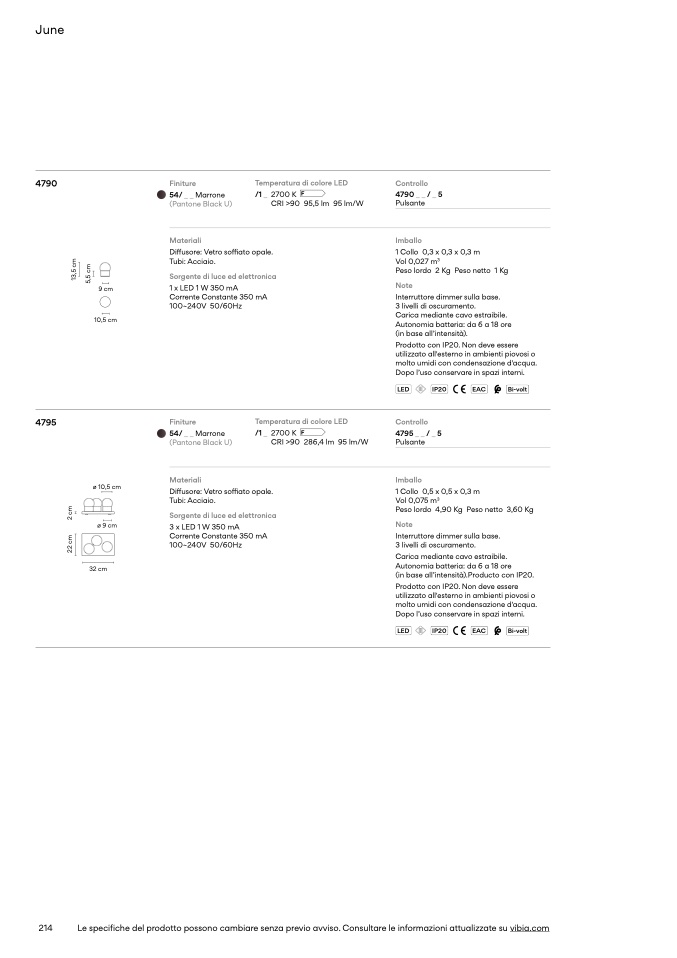 Le specifiche del prodotto possono cambiare senza previo avviso. Consultare le informazioni attualizzate su vibia.com