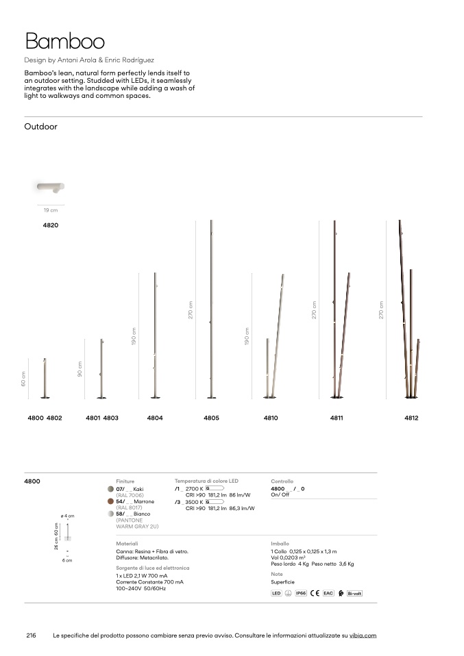 Le specifiche del prodotto possono cambiare senza previo avviso. Consultare le informazioni attualizzate su vibia.com