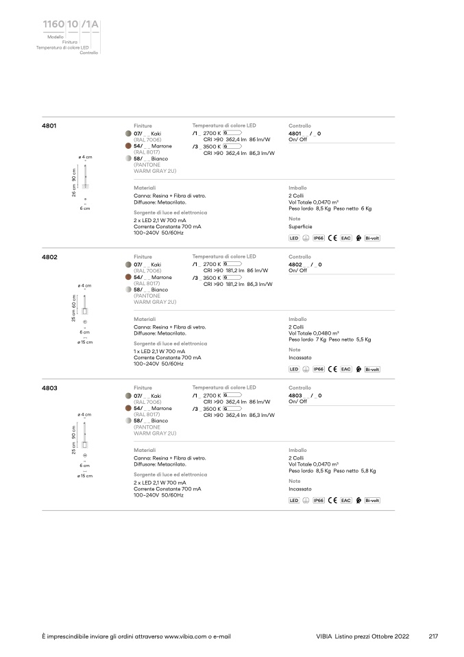 È imprescindibile inviare gli ordini attraverso www.vibia.com o e-mail
