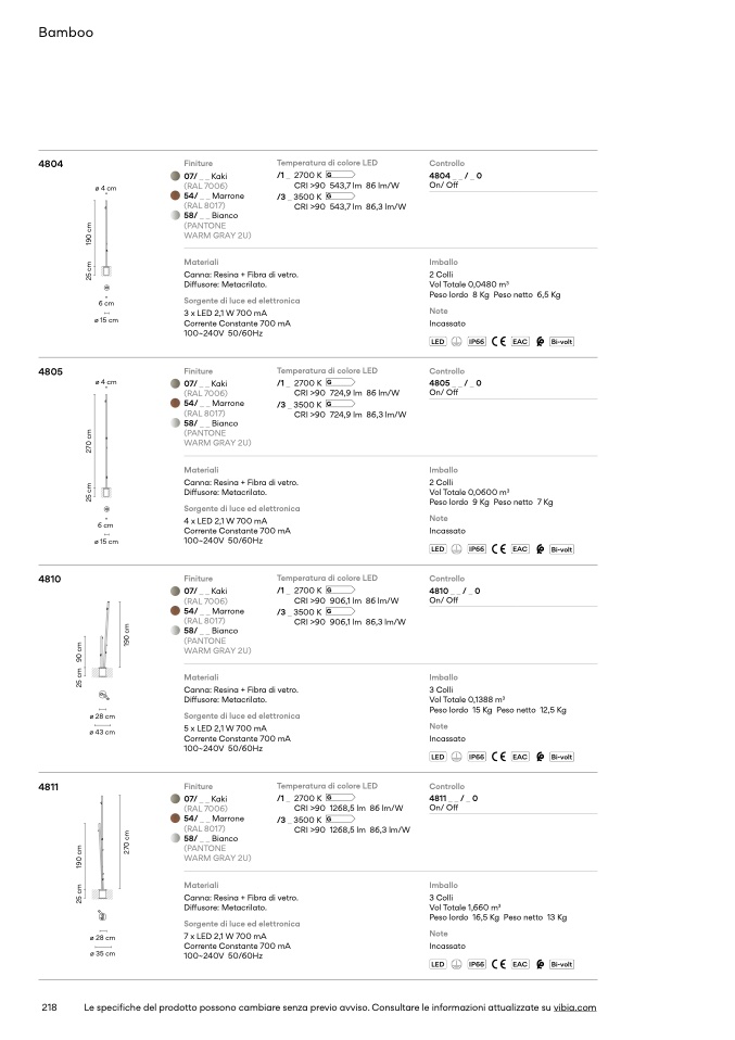 Le specifiche del prodotto possono cambiare senza previo avviso. Consultare le informazioni attualizzate su vibia.com