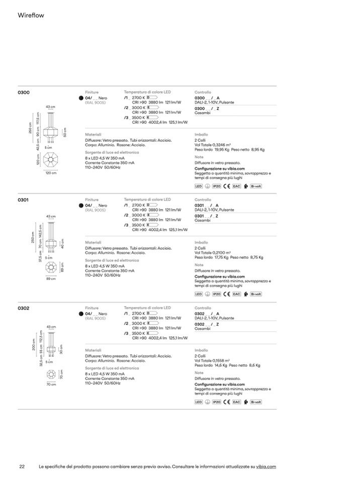 Le specifiche del prodotto possono cambiare senza previo avviso. Consultare le informazioni attualizzate su vibia.com