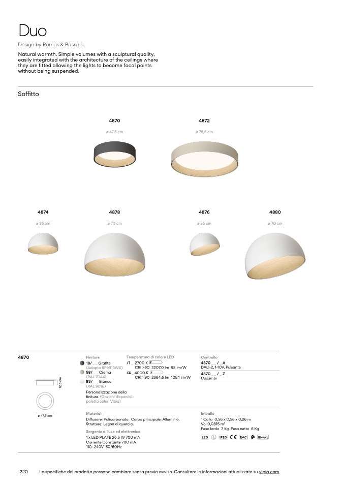 Le specifiche del prodotto possono cambiare senza previo avviso. Consultare le informazioni attualizzate su vibia.com