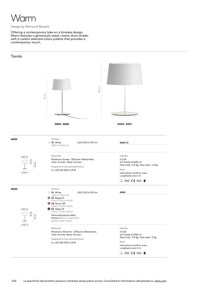 Le specifiche del prodotto possono cambiare senza previo avviso. Consultare le informazioni attualizzate su vibia.com