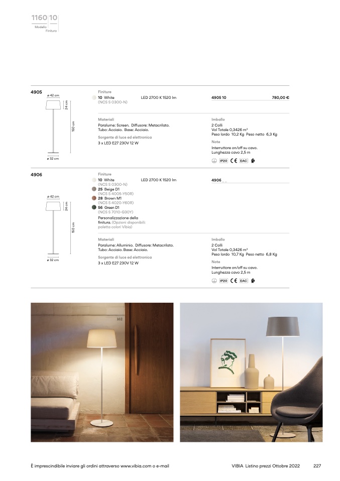 È imprescindibile inviare gli ordini attraverso www.vibia.com o e-mail