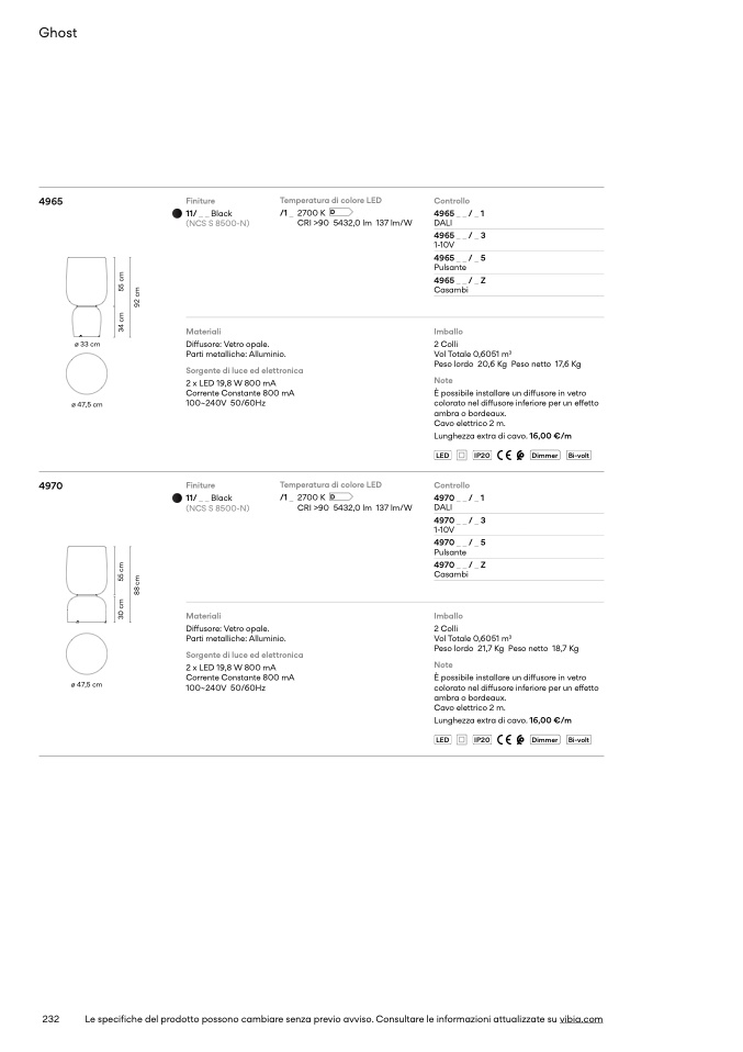 Le specifiche del prodotto possono cambiare senza previo avviso. Consultare le informazioni attualizzate su vibia.com